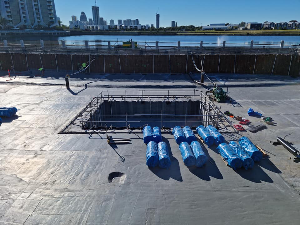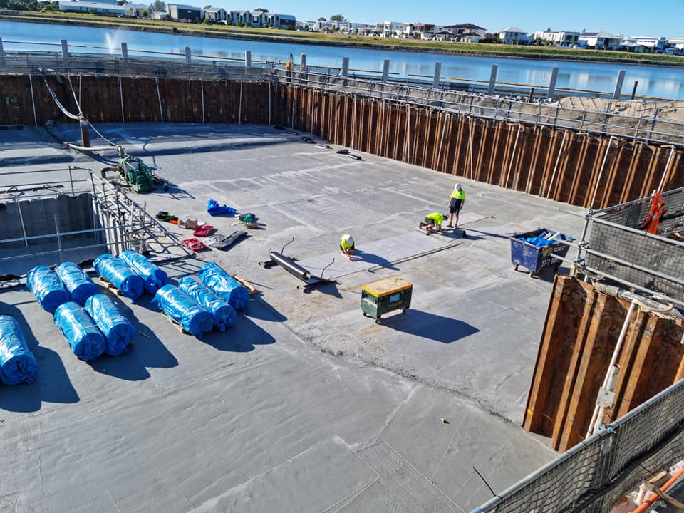 Stage Two of The Lanes Residences are underway and we are waterproofing 7000m2 of basement with Cetco bentonite blanket.